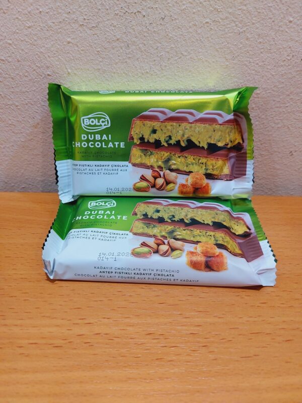 Дубайський шоколад з фісташковим кадаіфом від Bolci — це вишуканий десерт, що поєднує традиції східних солодощів та європейську шоколадну майстерність. Кожен шматочок цього молочного шоколаду наповнений ніжною фісташковою начинкою та хрусткими нитками кадаіфу, створюючи неповторну гармонію смаків та текстур.