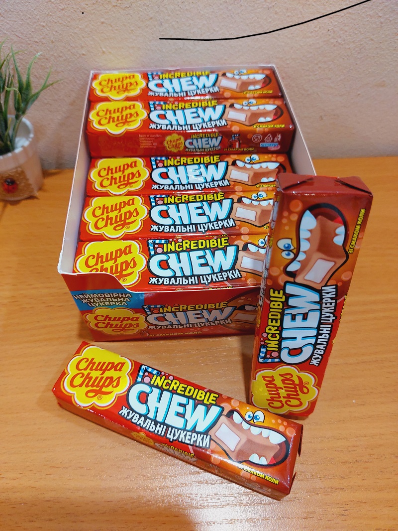 Жувальні цукерки Chupa Chups зі смаком коли — це яскраві та смачні солодощі, які обіцяють неймовірну насолоду. Упаковка вагою 45 г містить кілька окремих цукерок, кожна з яких має насичений і приємний смак коли. Цукерки мають м’яку та жувальну текстуру, що робить їх особливо приємними для жування.