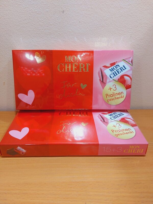 Дивлячись на яскраву упаковку цукерок Mon Cheri, одразу виникає асоціація з соковитою вишнею, що правильно, адже це серія шоколадних цукерок від Ferrero, всередині яких вишня, «плаваюча» в лікері.