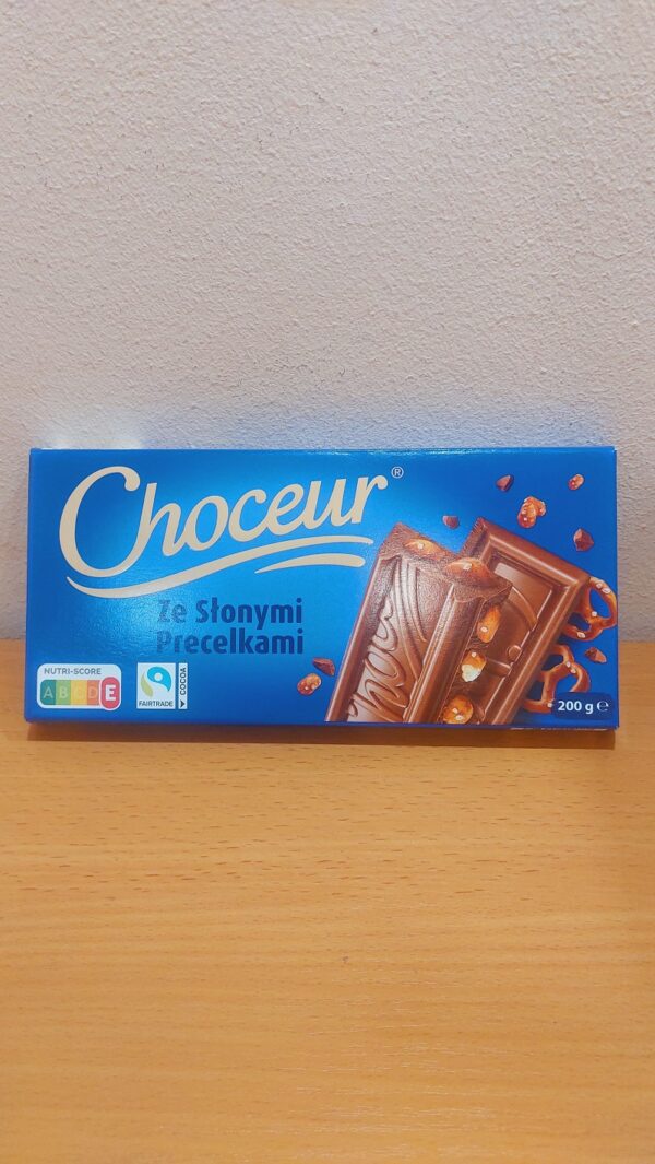 Шоколад Choceur молочний з солоним печивом Pretzel con Sal – поєднує в собі ніжність молочного шоколаду і хрустку текстуру печива крендель, злегка посоленого для додання контрасту смаків. Цей шоколад створює незабутній гастрономічний досвід, що чудово підходить для тих, хто цінує оригінальні та сміливі комбінації.